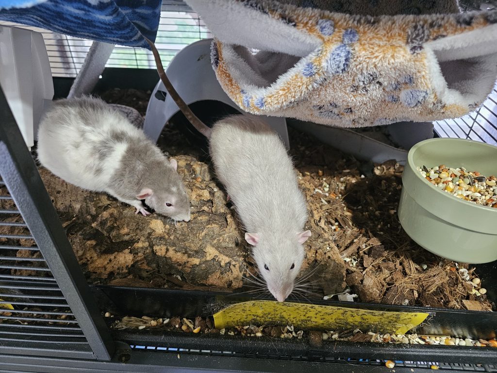 A bioactive cage provides a “self-cleaning” ecosystem that breaks down animal waste and provides a more natural environment for them. It should include a clean up crew of Isopods and Springtails, and your rats may even eat some of the clean up crew if so inclined (this is perfectly safe, and it is a fun healthy snack for your rat).
