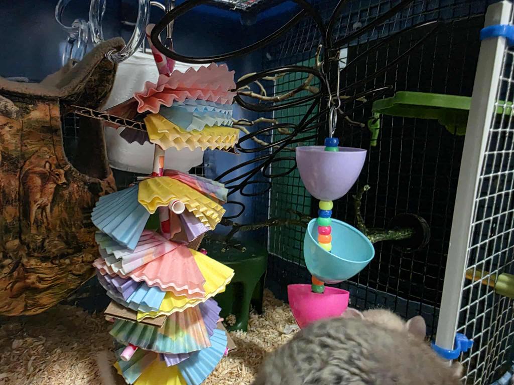 Supervision: Supervise free-roam time outside the cage, especially when introducing new enrichment items.
