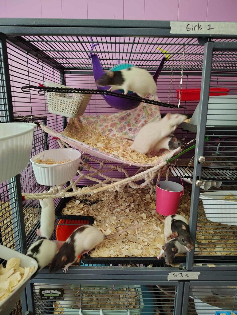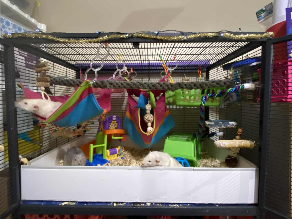 Climbing and Exploration: Multi-level cages: Rats enjoy climbing, so provide platforms, shelves, and ladders within their cage.